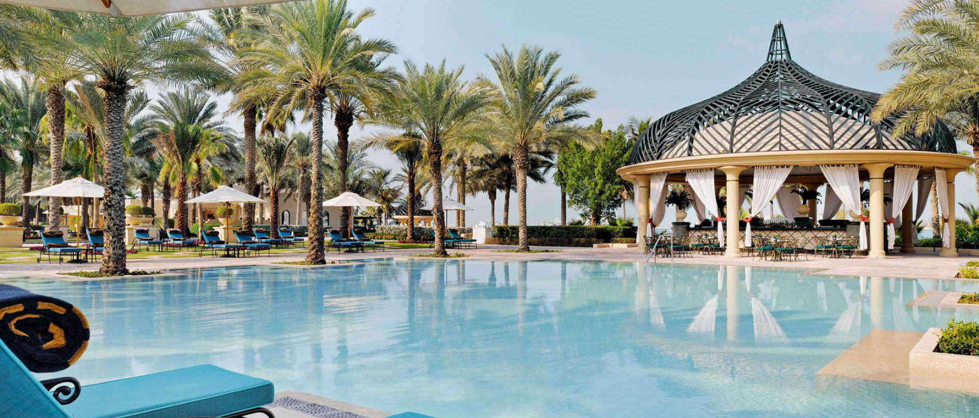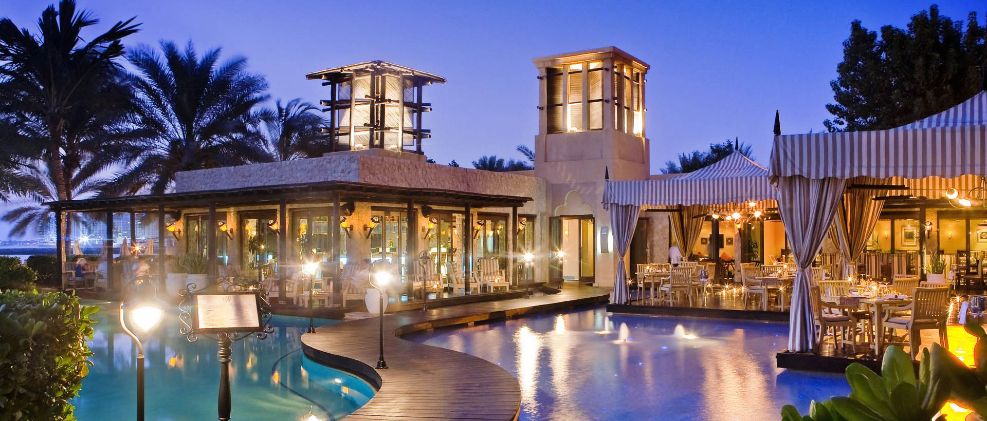 Среди пышного парка, раскинувшегося на 25 гектарах, с раскидистыми пальмами, журчащими фонтанами и изумрудными лужайками, у просторного пляжа, где плещутся голубые волны Персидского залива, расположился великолепный курортный комплекс One And Only Royal Mirage Hotel 5* состоящий из трех отелей Arabian Court, The Palace и Residence & Spa , сочетающих современный комфорт с уникальными традициями древнего Востока.