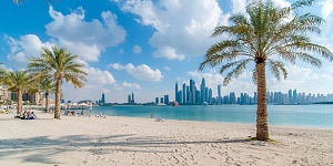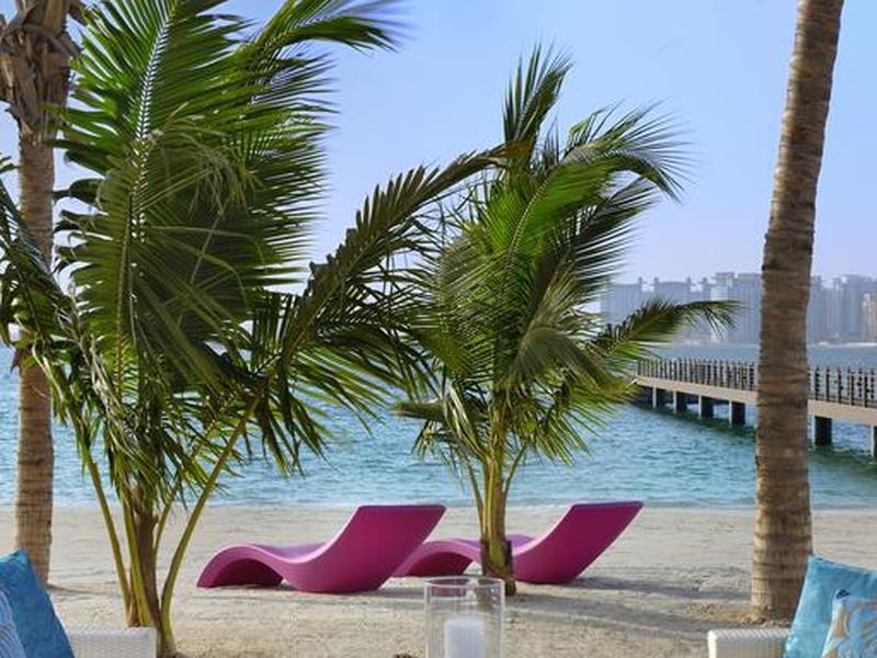 Пляж широкий, песчаный, с красивыми видами на Дубай Марину и ствол Пальмы. Море всегда спокойное, волн нет, открытого пространства тоже нет – загораживает ветка Пальмы. Вход в море пологий, мелкий – хорошо для тех, кто приехал с детьми.