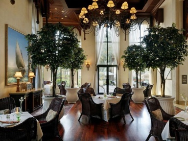 В элегантном ресторане The Rotieserie, выполненном в старинном восточном стиле, с террасой, окруженной садом и журчащими фонтанами, подаются блюда традиционной европейской кухни.